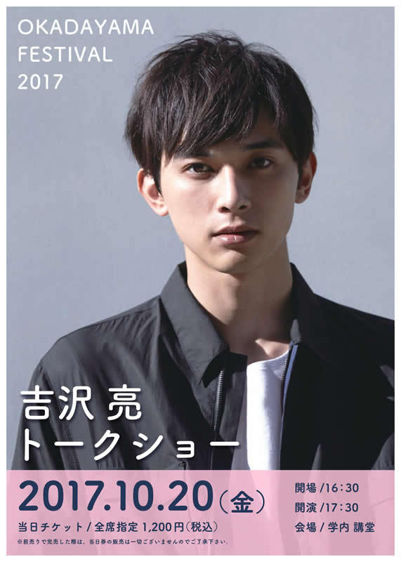 2017年度岡田山祭のテーマは「百花繚乱」です!「女学院生一人ひとりが個性を発揮して、様々な場所で自分色の花を咲かせられるように」という想いを込めてこのテーマを選びました。 今年は、話題沸騰中の超イケメン俳優、「吉沢 亮」さんをお招きし、トークショーを開催します! また、毎年恒例のファッションショーやビンゴ大会、クラブや有志団体による模擬店・舞台発表など様々なイベントをご用意しております。 神戸女学院の建物は重要文化財にも指定されておりますので、岡田山祭とあわせて、学内の景観もお楽しみ頂ければ幸いです。 皆様のご来学お待ちしております。